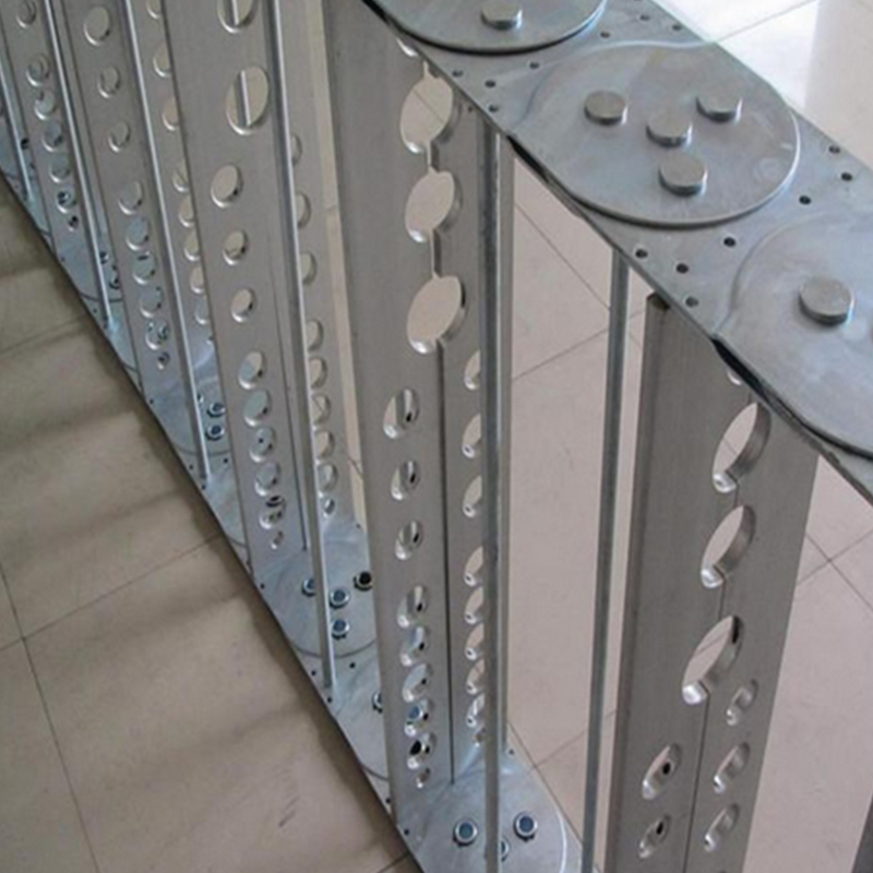 2.鋼制拖鏈拖鏈的支撐板寬度為 150mm 至 800mm, 孔與孔之間的間隔量為10mm.鏈板的高度也就是支撐板的高度,是由電纜最大直徑?jīng)Q定的。