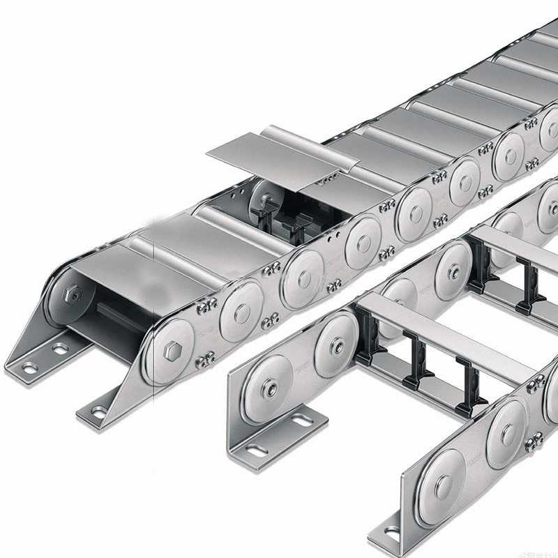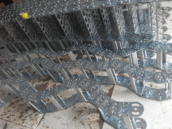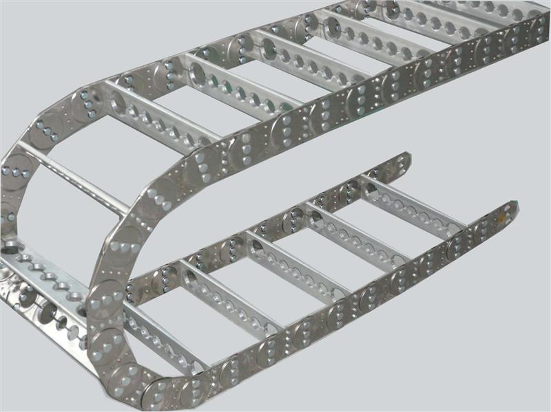 鋼制拖鏈,一般應(yīng)用在機(jī)床機(jī)械等的電纜、油管、氣管、水管、風(fēng)管上,起牽引和保護(hù)作用。鋼制拖鏈的使用最早起源于德國,后來國內(nèi)引用并創(chuàng)新結(jié)構(gòu)。