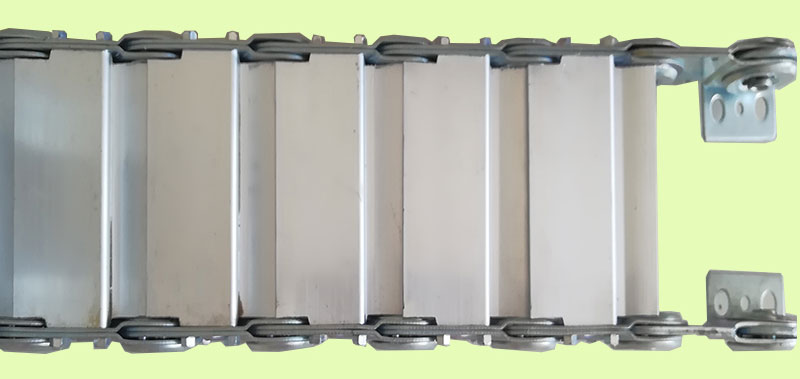 結(jié)構(gòu):兩側(cè)鏈板采用鋼制結(jié)構(gòu)淬火處理,橫梁和封閉板采用鋁合金加工制作。