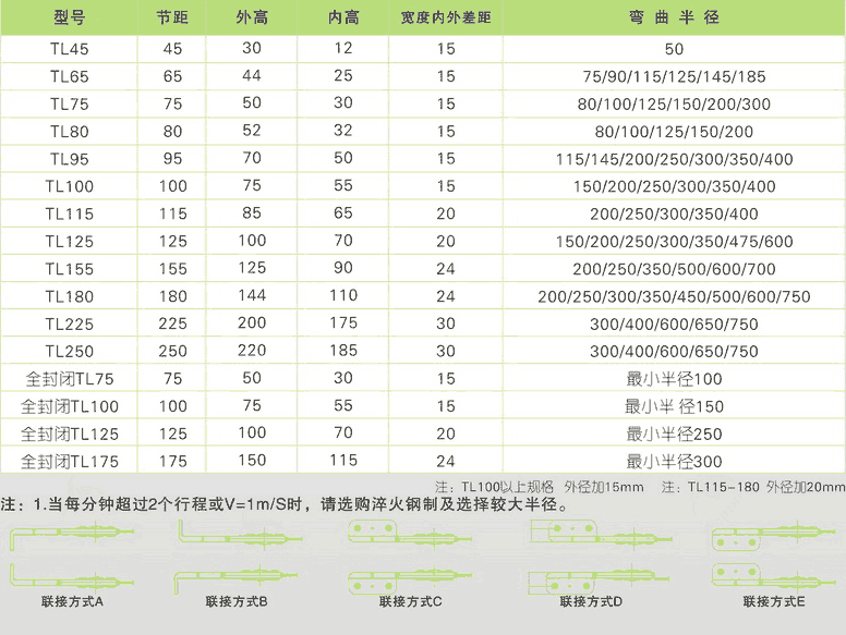 鋼制拖鏈規(guī)格尺寸參數(shù)表