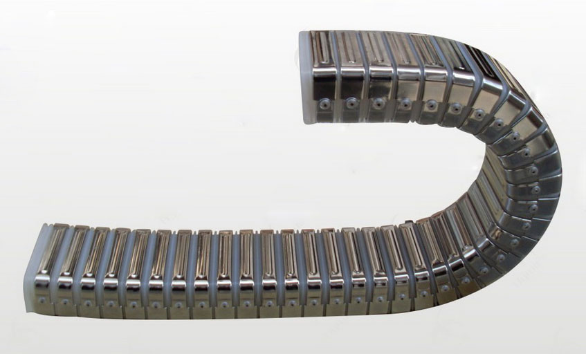 特點:可承載數(shù)量多,重量大的電纜及油管,懸空長度達(dá),堅固耐用,耐高溫,寬度可根據(jù)客戶需求靈活定做。