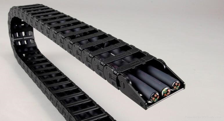 正確選擇彎曲半徑還需要根據(jù)實(shí)際的高度空間限制,彎曲半徑要小于設(shè)備空置的空間高度,另外彎曲半徑還應(yīng)達(dá)到電纜最大直徑的10倍。選擇范圍在75-650mm,行程小選擇彎曲半徑較小的拖鏈。